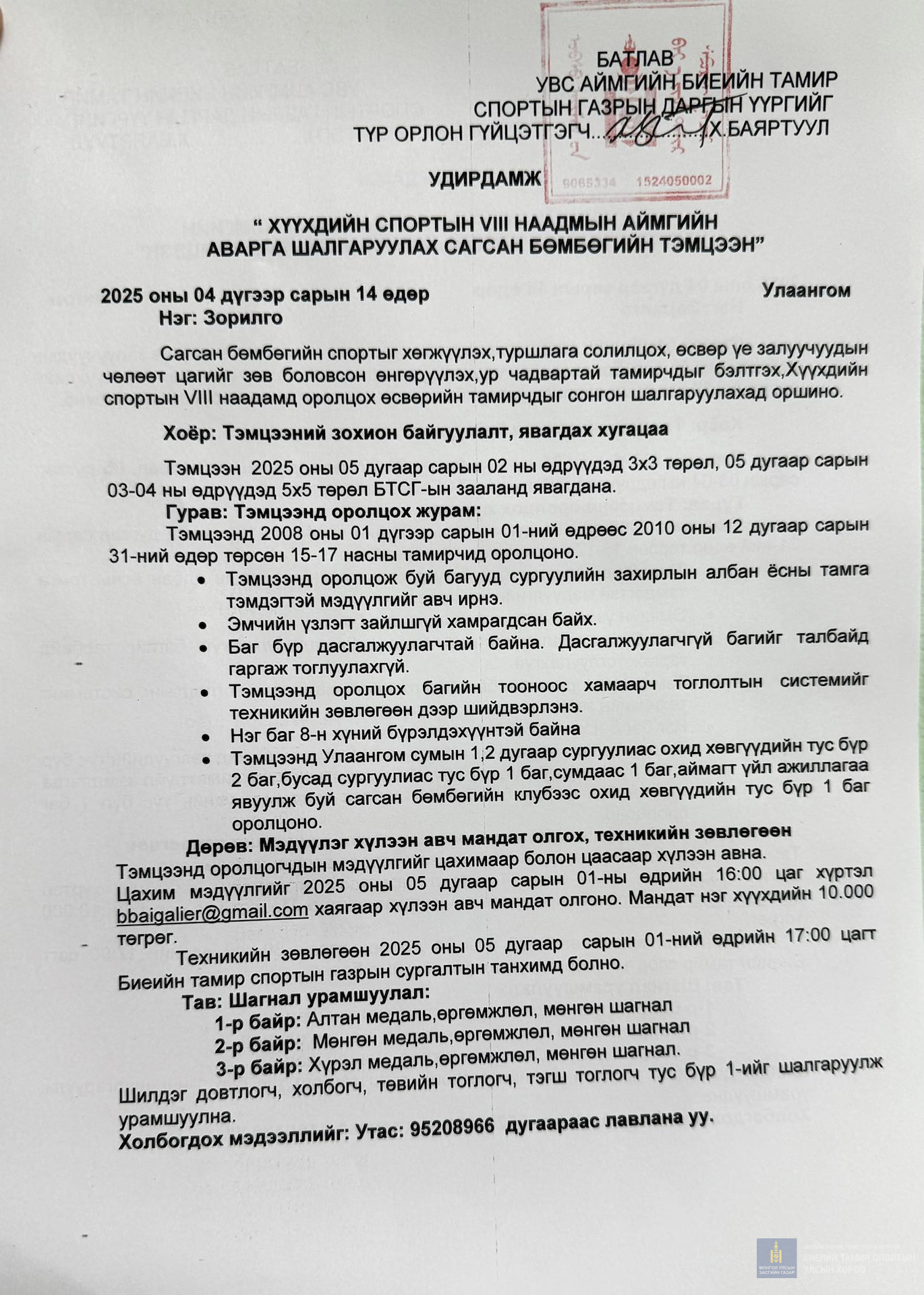 Хүүхдийн спортын 8-р наадмын сагсан бөмбөгийн ААШ тэмцээний удирдамж