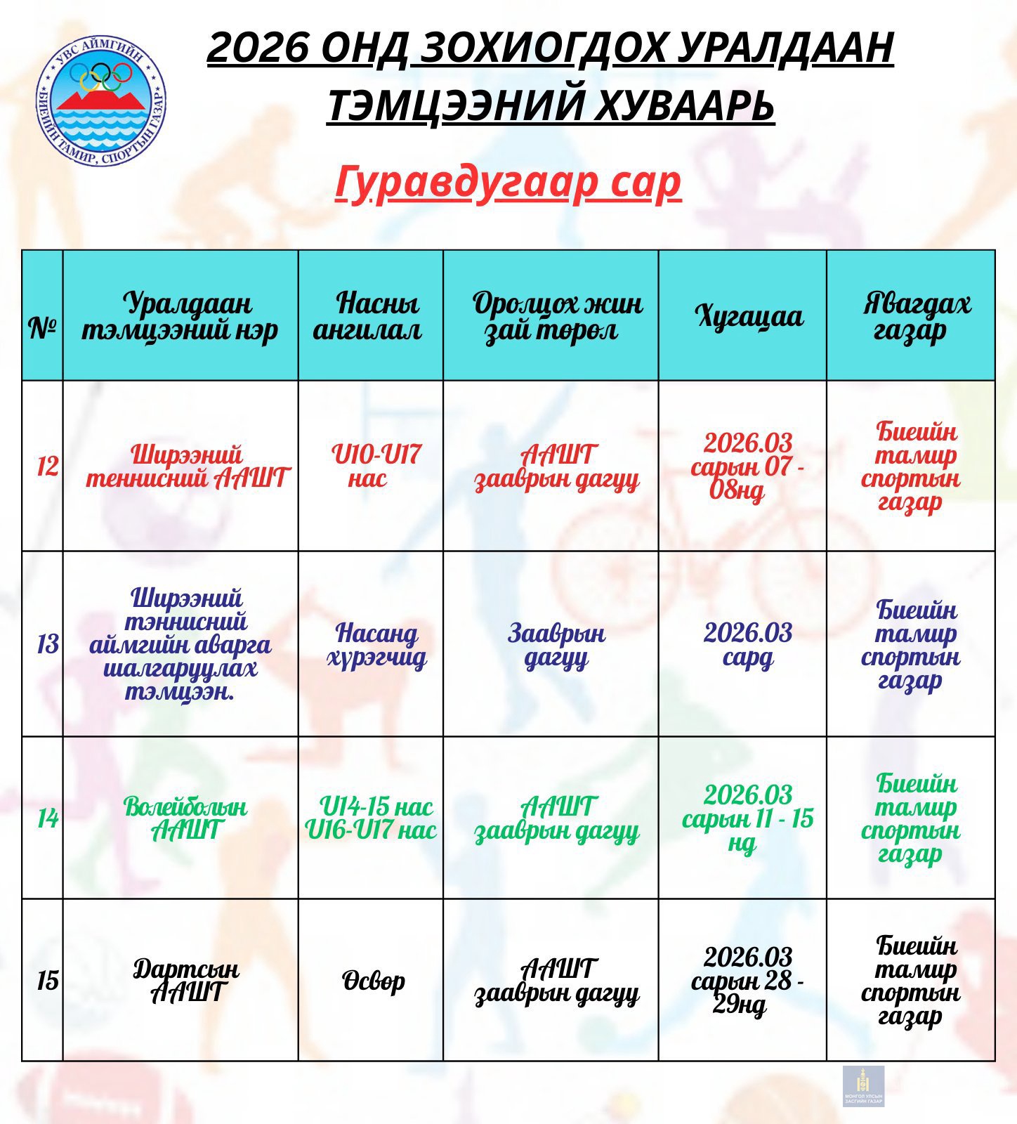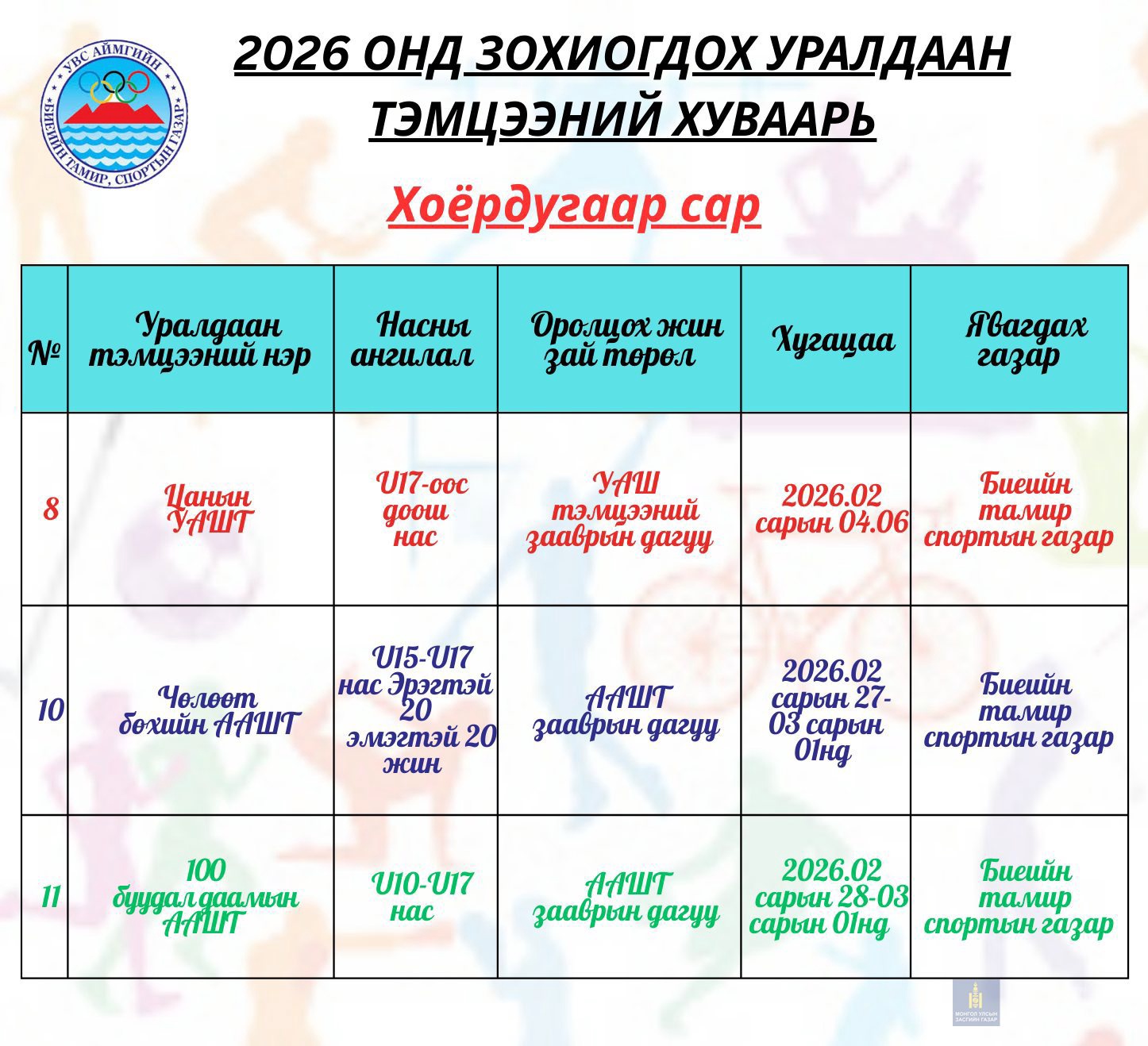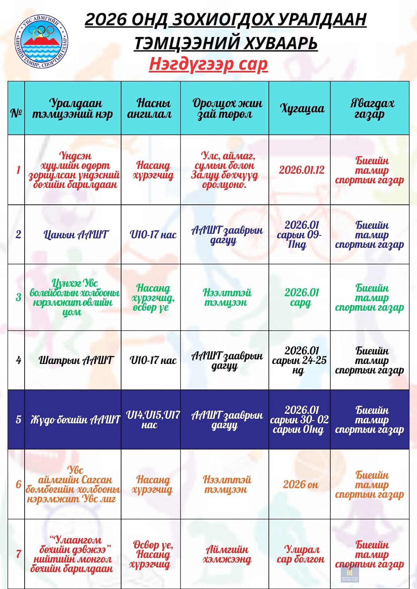 НЭГДҮГЭЭР УЛИРАЛД ЗОХИОГДОХ УРАЛДААН ТЭМЦЭЭНИЙ ХУВААРЬ
