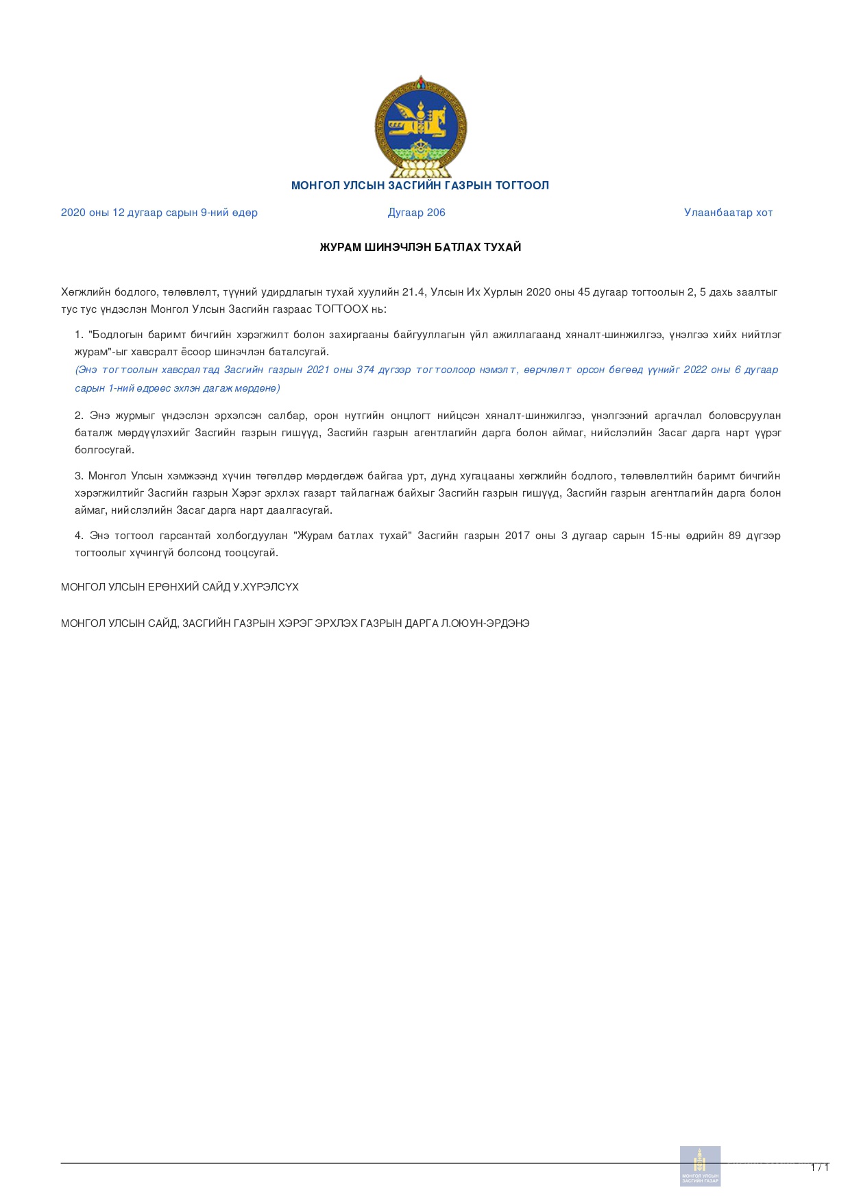 БАЙГУУЛЛАГЫН ҮЙЛ АЖИЛЛАГААНЫ ЧИГ ҮҮРЭГ